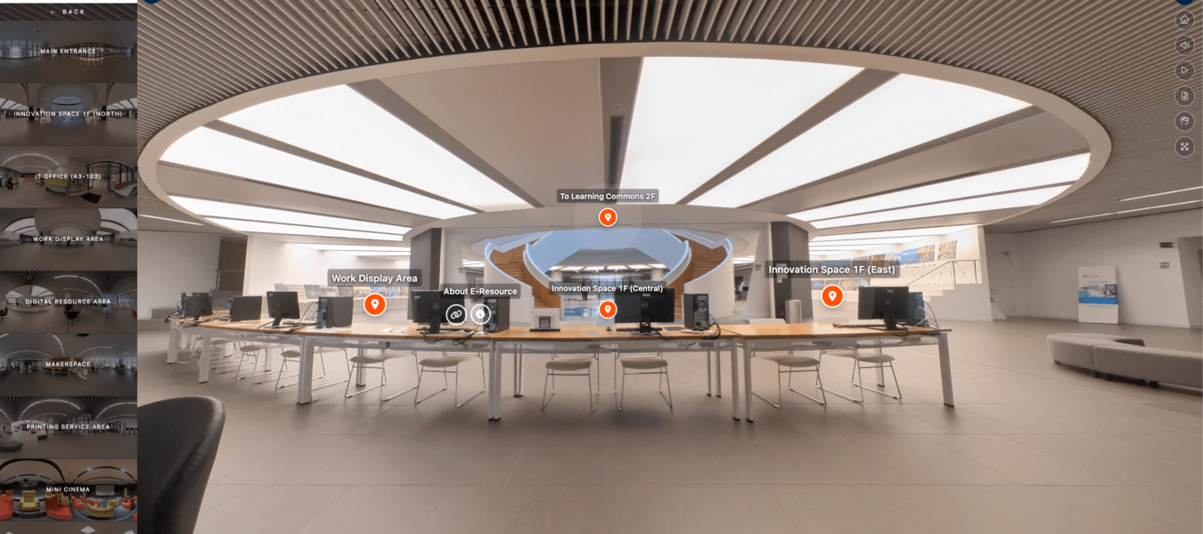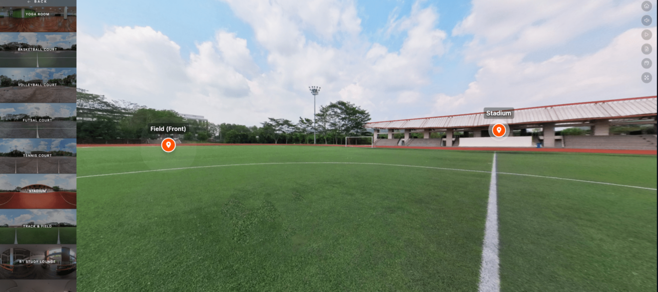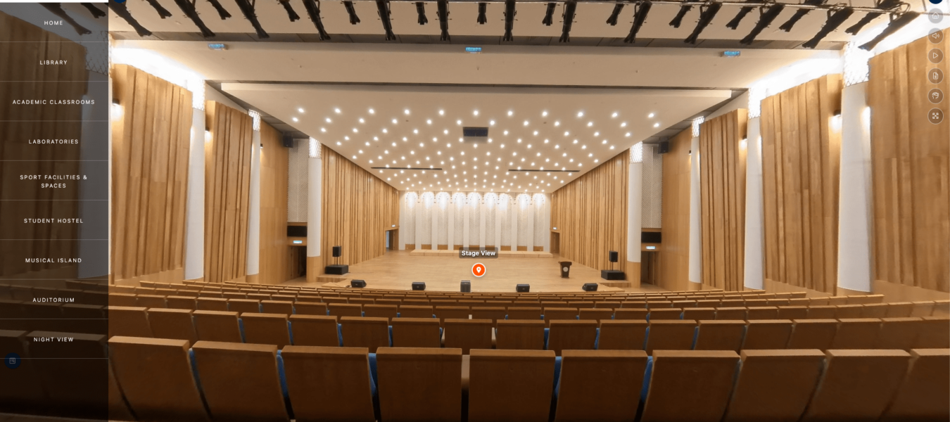 During the virtual tour, you will be taken on an immersive journey. You’ll traverse a sequence of 360-degree fascinating photos, providing a panoramic perspective of diverse campus locations. Throughout the tour, text information and interactive hotspots will appear, providing intriguing details about various buildings, landmarks, academic, sports, and recreational facilities that showcase campus life.